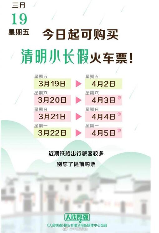 原标题:今起可购买清明小长假火车票!清明小长假购票日历一图全览