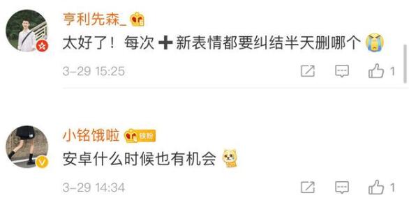 在微信8.0.3版本中,表情包上限直接增长了2倍多,增至999个。网友表示:“终于可以不用为了存表情删掉一堆旧表情了!”不少安卓用户也在催促:“什么时候轮到安卓?羡慕了。”