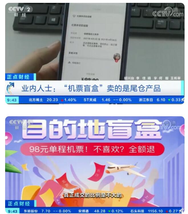 “98元盲盒随机飞,不想去全额退”,今年4月3日,某旅游App发起了“机票目的地盲盒”活动,吸引超过1000万用户参与抢购。抽到98元的机票盲盒,就真的能做到“说走就走 想飞就飞”吗?这些机票的原价又是多少呢?