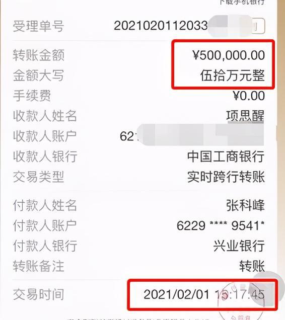 2021年2月,也就是发现项思醒劈腿的前一个月,张科峰从银行总共转了100万给她,用作结婚储备金。