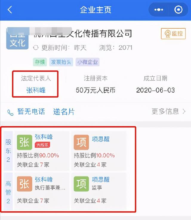 在某APP上也确实能查到他的相关信息,名下有7家关联企业。值得一提的是,合伙人就是他所提到的“海王女友”项思醒——1996年9月1日出生的百万粉丝网红女主播。