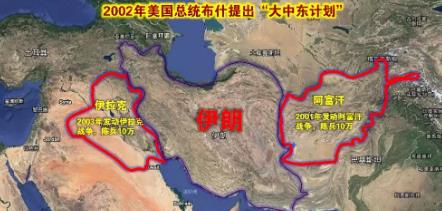 由于中俄都是联合国五大常任理事国,具有“一票否决权”,而且中俄都是核大国,美国也不敢对中俄发动直接战争。为了迫使中俄“投降”,于是美国制定了一个鼎鼎有名的计划“大中东计划”。