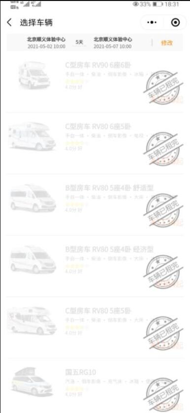 在某房车租车软件上记者发现,位于房山和顺义的两个取车还车点,五一期间的全部车型已经被租赁一空。而在另一家房车租赁公司的价格目录里,明确标注了租赁价格分为平时价和节假日价,后者是前者的1.2倍。