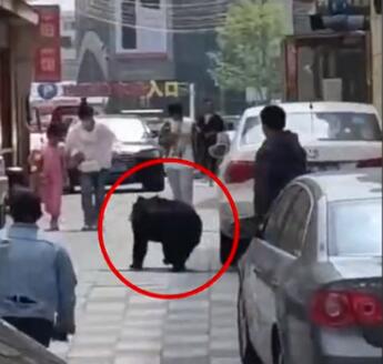 辽宁一马戏团黑熊逃跑上街,工作人员拿喇叭大喊提醒路人