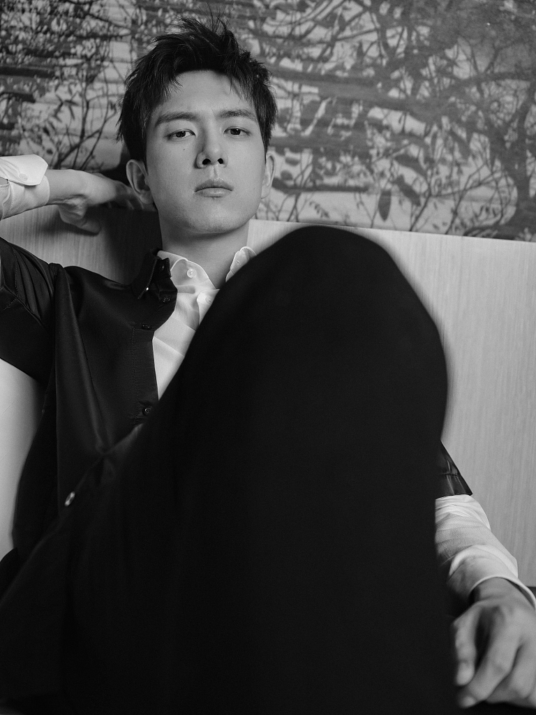 李现西装叠穿似贵公子 黑白光影下演绎复古格调