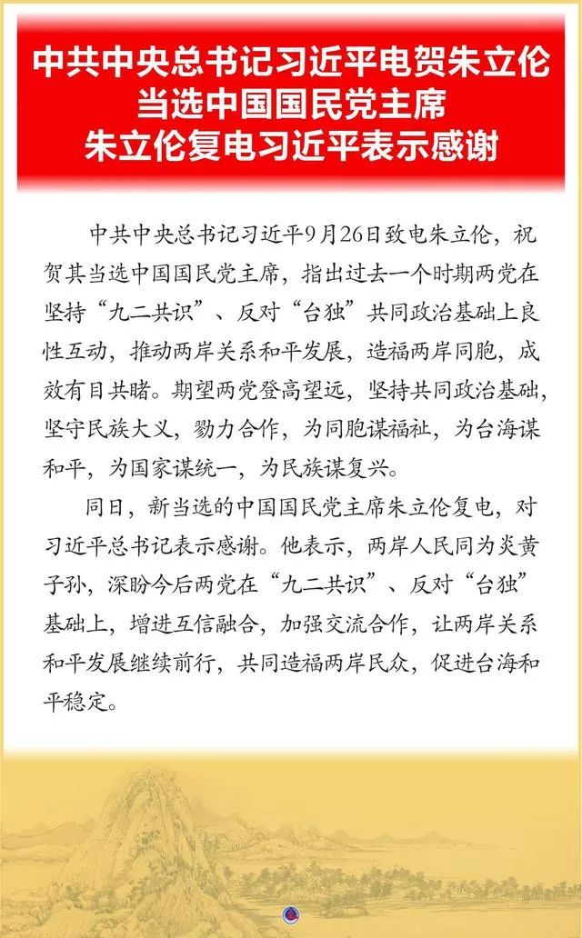 2021年9月25日,台湾省前中国国民党主席朱立伦以85164票获胜,当选国民党第11任主席,中国立刻给他发去了贺电——现在大家知道大陆为什么要给朱立伦发去贺电了吧。
