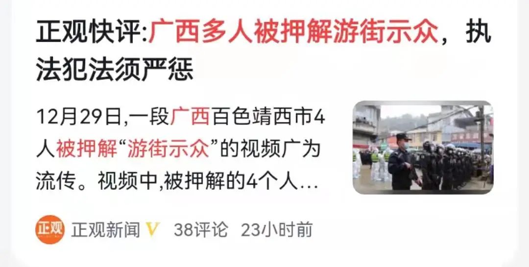 事情本身很简单,就是在12月29日晚上,一个热搜爆了,内容是12月28日一群人被押解“游街示众”的视频。