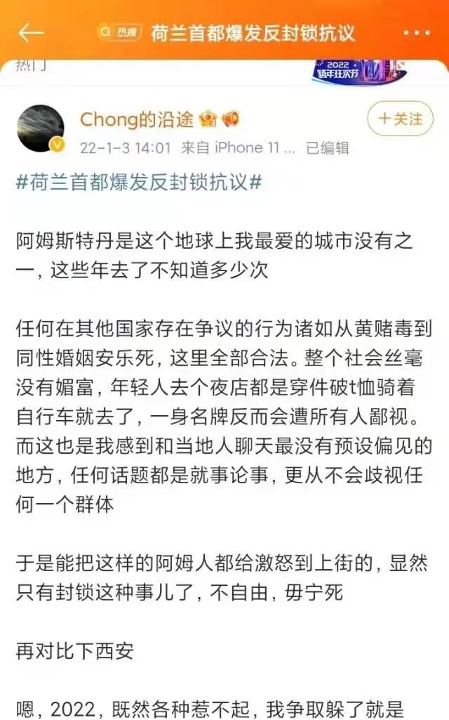 还有公知在微博上这样说:到现在还要给荷兰防疫洗白!
