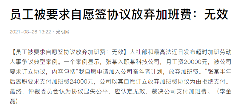 (去年某狼性企业的奋斗者协定,被人社部和最高法公开挂出来展示,裁定其无效!)
