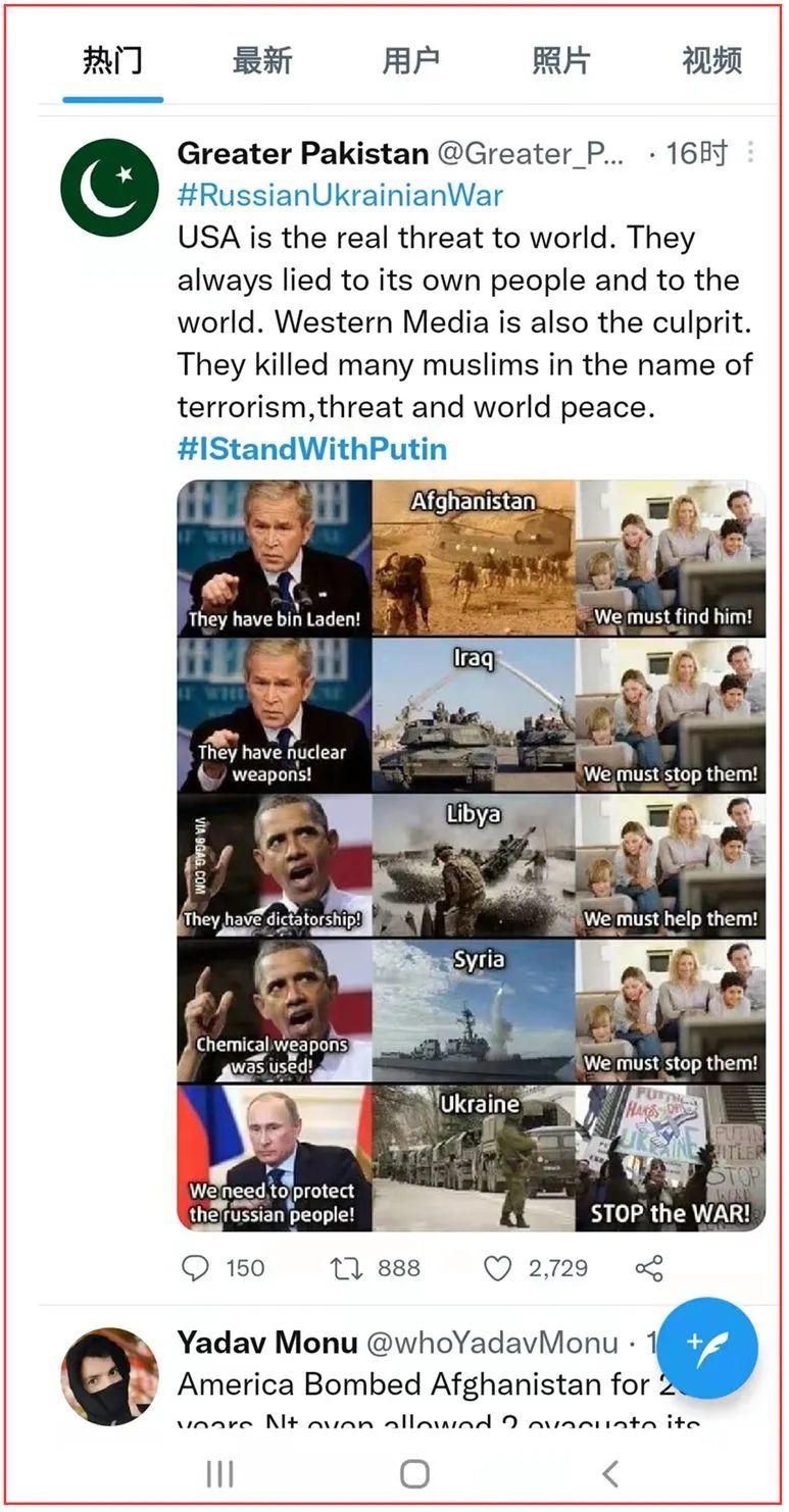 然而,第三世界国家的人民也空前团结,中国、印度、巴基斯坦、非洲.....大家都在谴责北约的东扩、美国的霸权主义、乌克兰的新纳粹。很多本来关系不怎么样的国家,他们的人民在俄乌问题上立场出奇地一致。