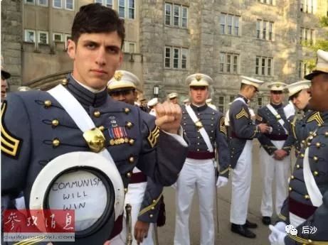 2017年9月,西点军校学生斯潘塞·拉波内少尉,在毕业典礼上,他的军帽内写有——“共产主义必胜”,军服内还有切·格瓦拉头像的T恤。
