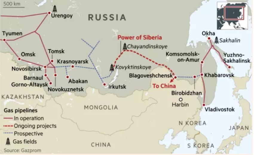 目前,西西伯利亚和东西伯利亚间并没有连通的管道,所以俄罗斯在东西伯利亚和远东地区的天然气只能靠管道出口到亚洲,西西伯利亚的天然气则仅能靠管道传输到欧洲。把天然气管道连接起来,将使俄罗斯具备在欧洲和亚洲之间切换天然气供应的能力。
