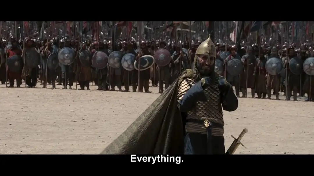 萨拉丁回答他,Nothing,然后离去,几秒之后又一个回头,Everything。