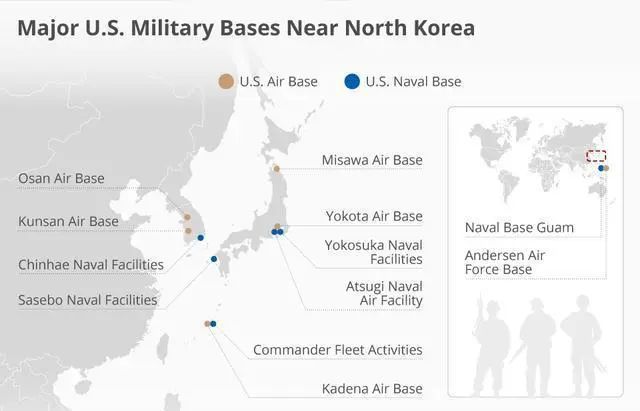 美国在韩国的军事基地,多是陆军为主,空军和海军很少,这意味着但凡韩国不怎么愿意卷入到这摊浑水中来,两国爆发冲突的面就小得多。