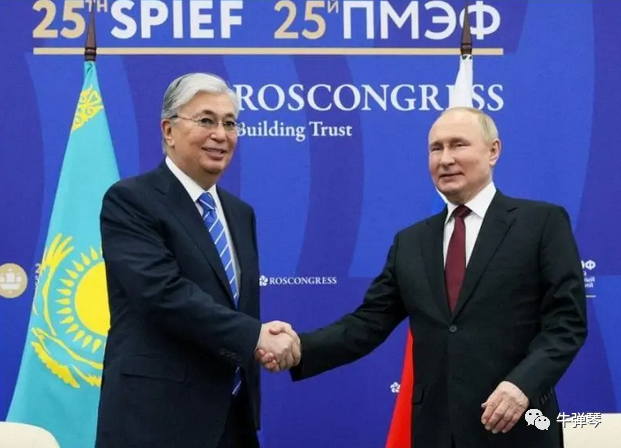 就在今年4月,一名俄罗斯电视台主持人声称,哈萨克斯坦如果不果断站在俄罗斯一边的话,就会面临和乌克兰同样的命运。这引发了哈萨克斯坦的强烈不满,哈外交部宣布此人为不受欢迎的人。在演讲中,托卡耶夫就说,这些言论最终只会损害两国人民,以及俄罗斯联邦本身的利益,“这些言论对我而言是莫名其妙的。前面所提到的这些人士,以某种奇怪的方式表达了他们对哈萨克斯坦领导人的决定或哈萨克斯坦正在发生的事情的看法。”表达了对俄罗斯某些人的不满,但又巧妙地表扬了一下普京,确实也是话里有话、柔中带刚。我没看到视频,但以普京的风格,估计是半躺并笑意盈盈听着。但看克里姆林宫网站,他随后与托卡耶夫有过这样一番交流。非常感谢你来圣彼得堡国际经济论坛。对我们来说,重要的是要强调我们的特殊关系,当然,还有机会与你就重大问题交换意见,当然主要是经济问题。今年我们将迎来建交30周年。我们会庆祝这一点。总的来说,我们的政府正在非常紧张地工作。时代很艰难,他们正在为每一个出现的问题寻找解决方案。我们现在将有机会在会谈期间和非正式晚宴上讨论这个问题。