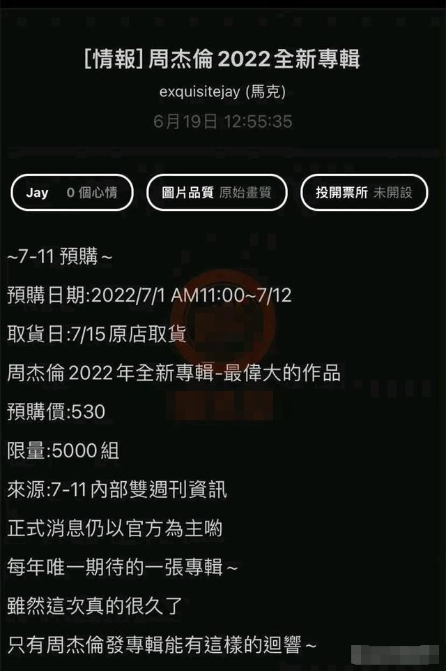 6月19日,周杰伦在社交平台官宣新专辑前导纪录片预告,宣布新专辑将与于7月15号发行。