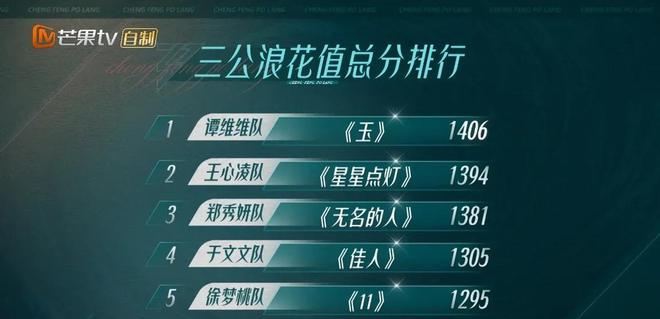 给五支队伍增加相应的浪花值之后,排名有了新的变化。