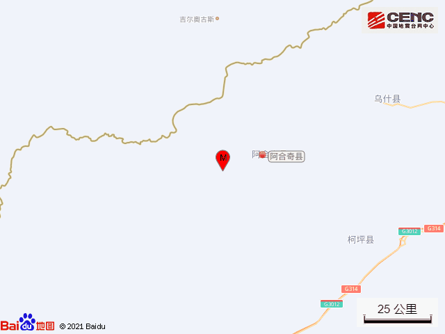 周边县城:震中距阿合奇县23公里、距柯坪县88公里、距乌什县98公里、距巴楚县125公里、距阿克苏市179公里,距图木舒克市138公里,距乌鲁木齐市845公里。