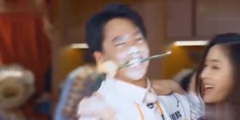 某综艺节目中,他和张天爱按照游戏规则,需要抱着贴在一起行动。