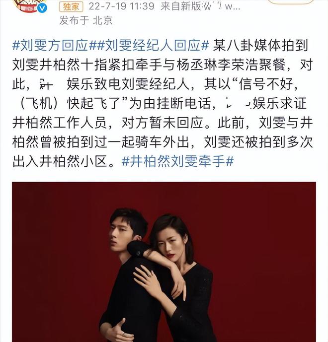 刘雯井柏然恋情疑似曝光,牵手聚餐被拍,经纪人回应:信号不好