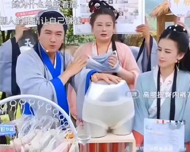 还把直播间设在户外,顶着高温,穿着古装兢兢业业地卖着内衣内裤。