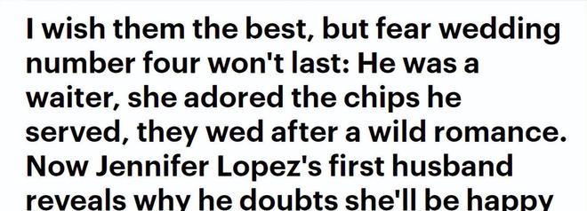 以自己的角度出发,讲述一个吸引人且经过润色的故事,无可厚非。但是吃不着葡萄就说葡萄酸,人家Bennifer月初才新婚,就说长久不了,这不是给人家添堵吗?!