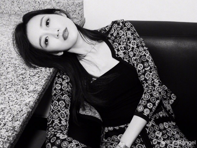 王鸥晒黑白风写真 穿套装戴黑超气场全开