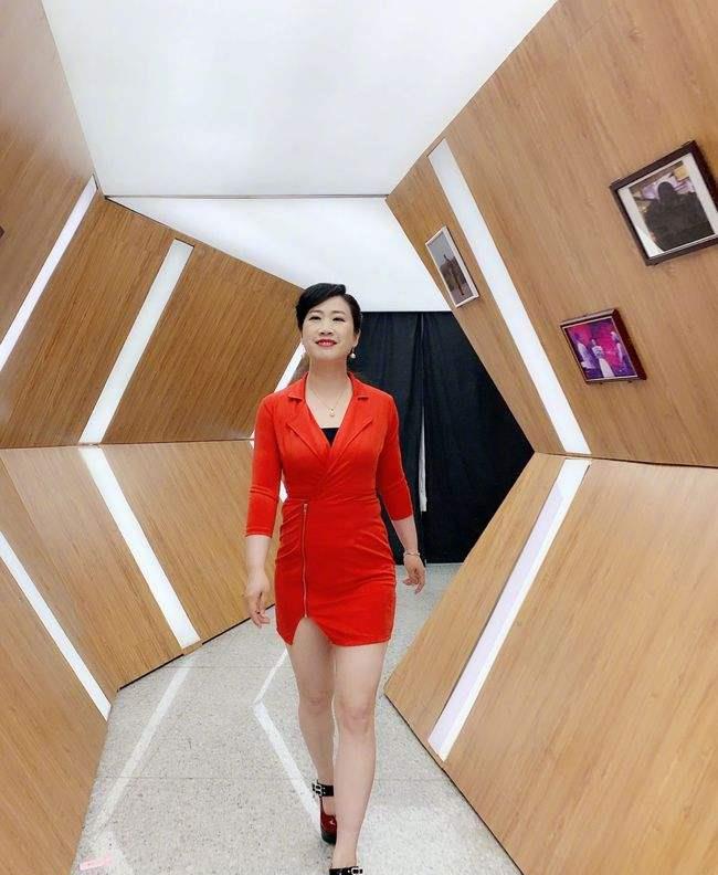 台上的她,一袭红裙,身材凹凸有致,优雅知性,气质恬淡。