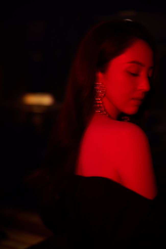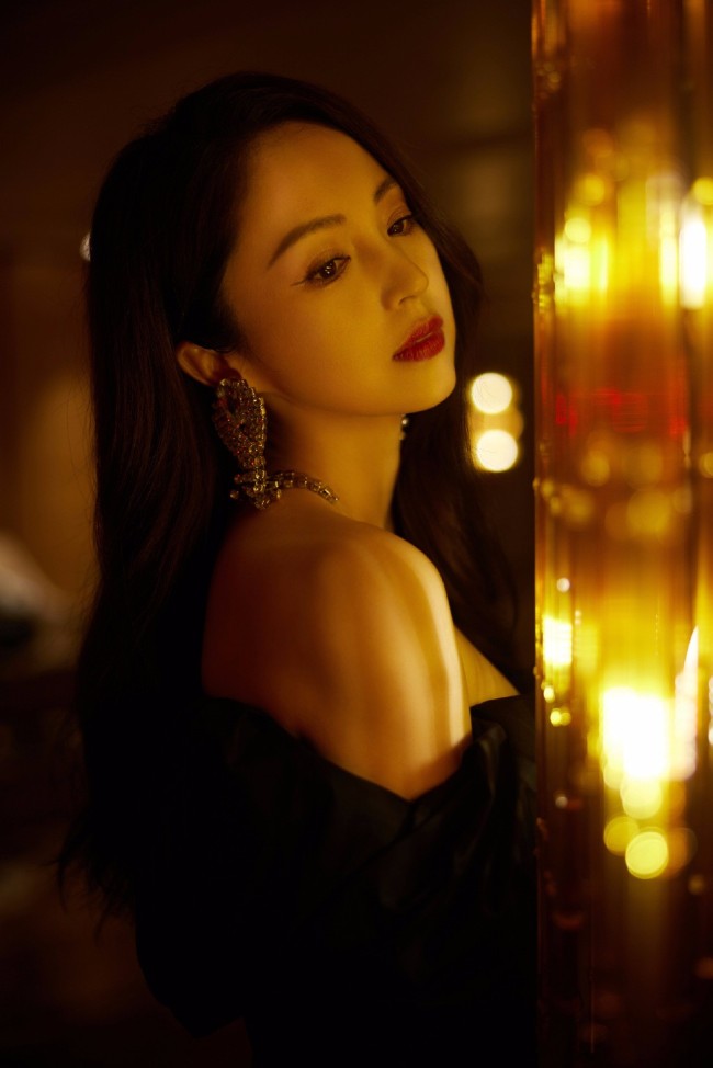 董璇迷离光影美照曝光 穿抹胸黑裙露香肩