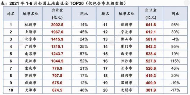 土地财政,成为了高房产价格的强力支撑,虽然多年前已经呼喊着要“去土地财政”化,然而时至今日,土地财政高依赖性依然存在,数据显示,在2021年的土地出让中,有6个城市出让金超过千亿元,分别是:杭州、上海、北京、广州、南京、武汉。尤其是杭州,直接达到了2千亿,直接提升至第一名的位置。其实,杭城的土地出让首位并不是第一次出现,在2017年、2018年、2019年这三年里,都是TOP1位置。
