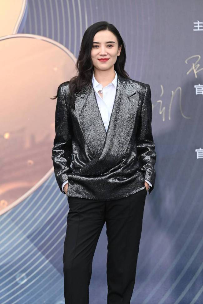 李宇春身穿灰色西服,染了绿色长发,帅气亮相。