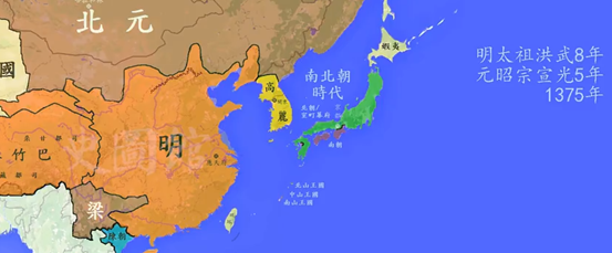 我们再来看看朱元璋在建立明朝前后,中原各地的军事割据情况。依次分别为1360年,1368年,1375年。