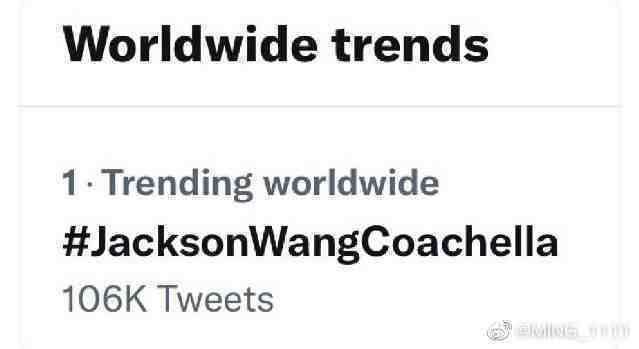 由于王嘉尔在科切拉的舞台上表演太过精彩,很快他登上了世趋(世界热搜)第一。