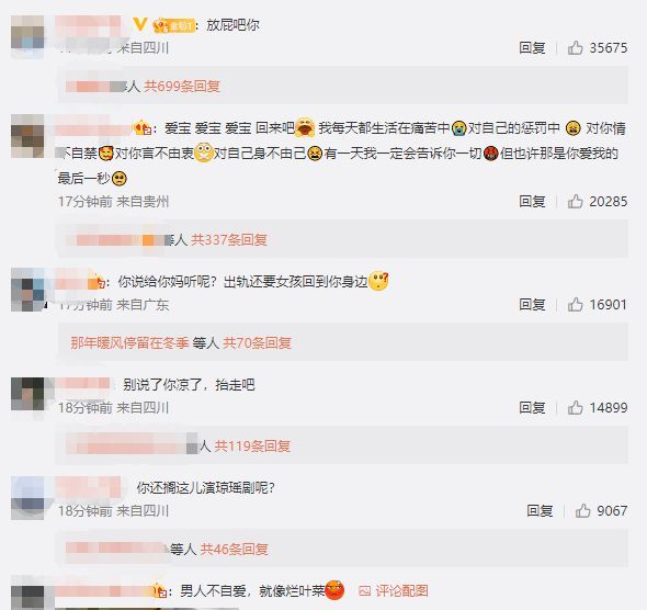徐开骋的道歉发布后,网友们并不买账,纷纷在底下嘲讽他,“你还搁这演琼瑶剧呢?”“男人不自爱,就像烂叶菜”。