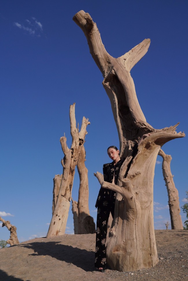 8月25日,一组倪妮在沙漠上拍摄的时尚大片曝光。倪妮的时尚表现力太绝了!高挑的身材与敦煌大漠戈壁的背景相得益彰,冷艳的表情气场全开。