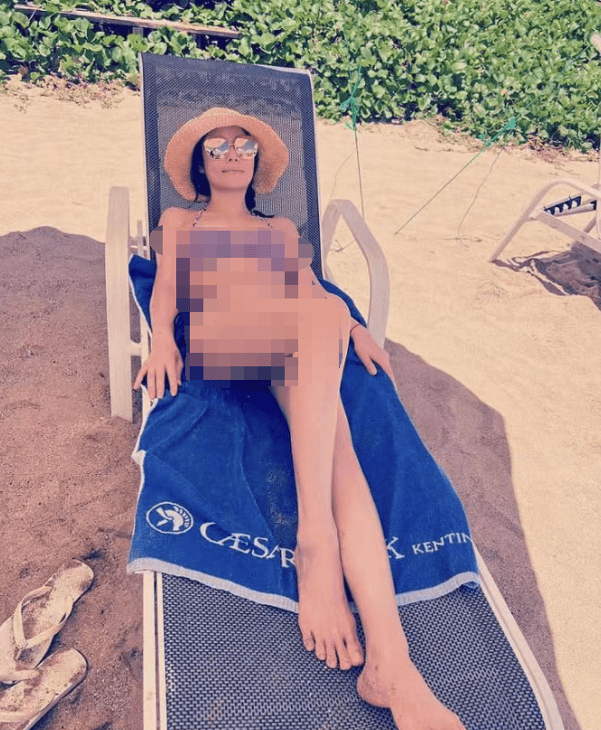 一个人躺在沙滩椅上,带着墨镜,穿着三点式泳装,身材紧致无赘肉,着实让人羡慕,尤其这还是她生完孩子的状态,不免让人对她的身材管理表示羡慕,觉得这不像是46岁的人该有的身材。