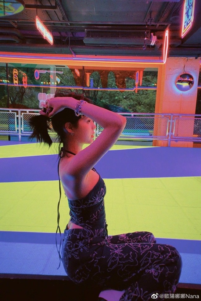 欧阳娜娜晒街头风美照 穿挂脖工装又甜又酷