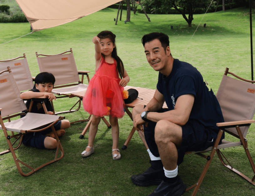导读:演员海一天晒照庆父亲节,一双子女“有样学样”,模仿父母坐姿