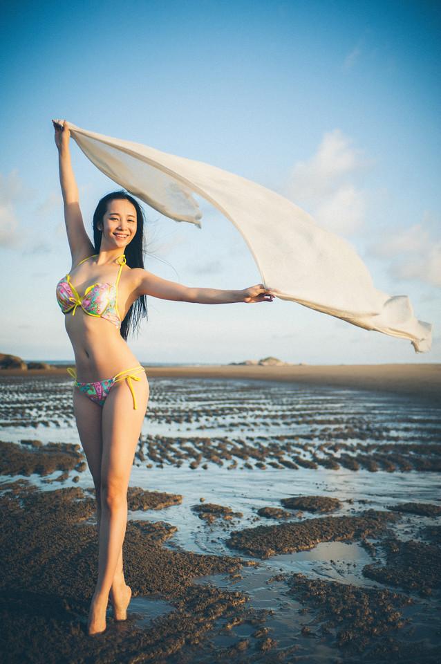 气质美女沙滩比基尼写真笑容甜美迷人(8)