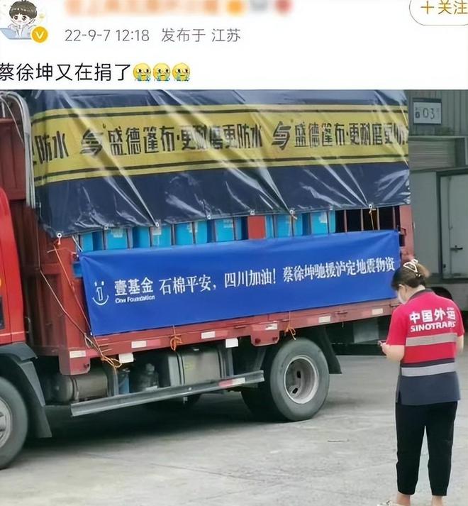 沙溢的“好大儿”蔡徐坤也向泸定捐赠了一卡车的物资,他本人都没有在社交平台特意说明, 低调行事,值得赞美。