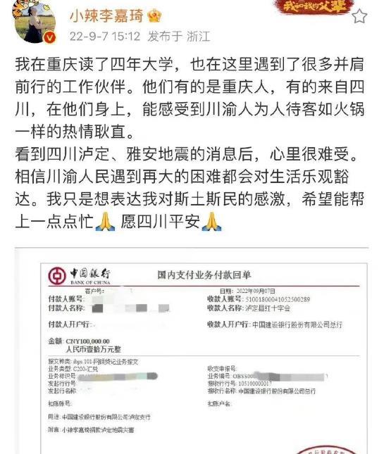 改名后的辣目洋子也以自己的本名的捐赠了10万驰援四川。热搜上出现#李嘉琦捐款十万元驰援四川#,让人直接联想到李佳琦,这乌龙可真是闹大了。