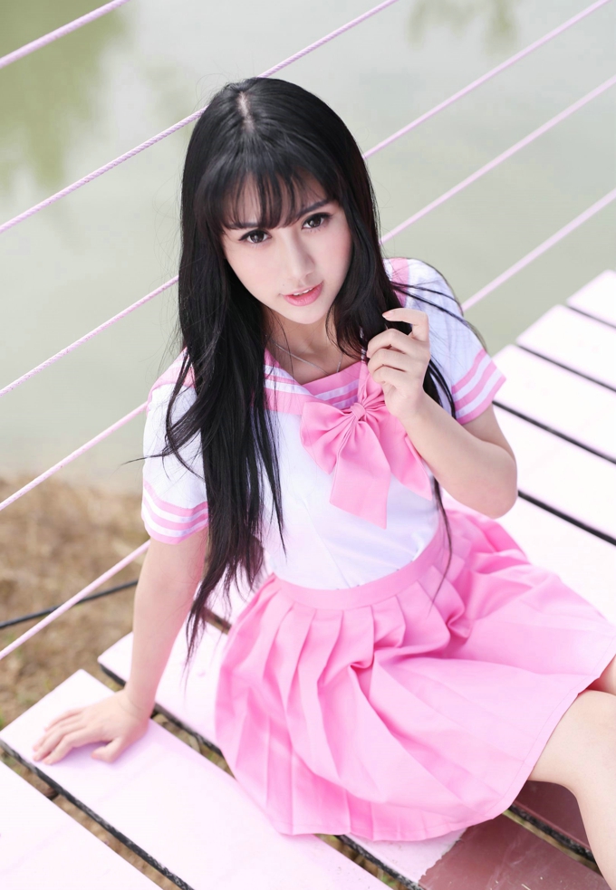 杨晓青儿粉红学生装制服诱惑写真_私房写真(15)