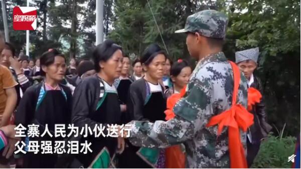 近日,贵州黔东南,从江县高武村一位00后苗族小伙参军。这是村里近40年以来第一个参军的小伙子,而上一位参军的正是这名小伙的父亲。出发前,全寨人都来为他送行。