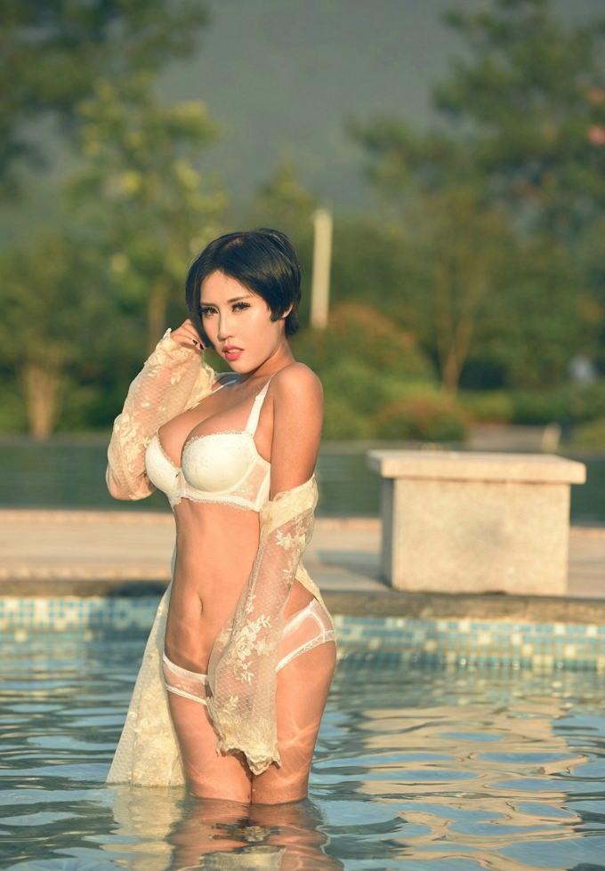 白色蕾丝内衣湿身透视诱惑迷人性感女神娜依灵儿迷人写真_私房写真(9)