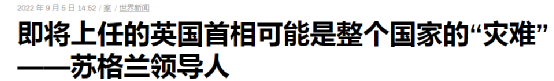 比如在她当选后,苏格兰当局已经作了表态,说特拉斯“对于苏格兰和整个英国都是一场灾难”。