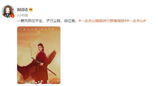此外,《一念关山》剧方还发布了踏路将行群像海报,并配文“一念结尘缘,勠力济关山。谋同心,行坦途。”主演刘诗诗、刘宇宁也在个人社交平台账号上晒出单人角色海报。