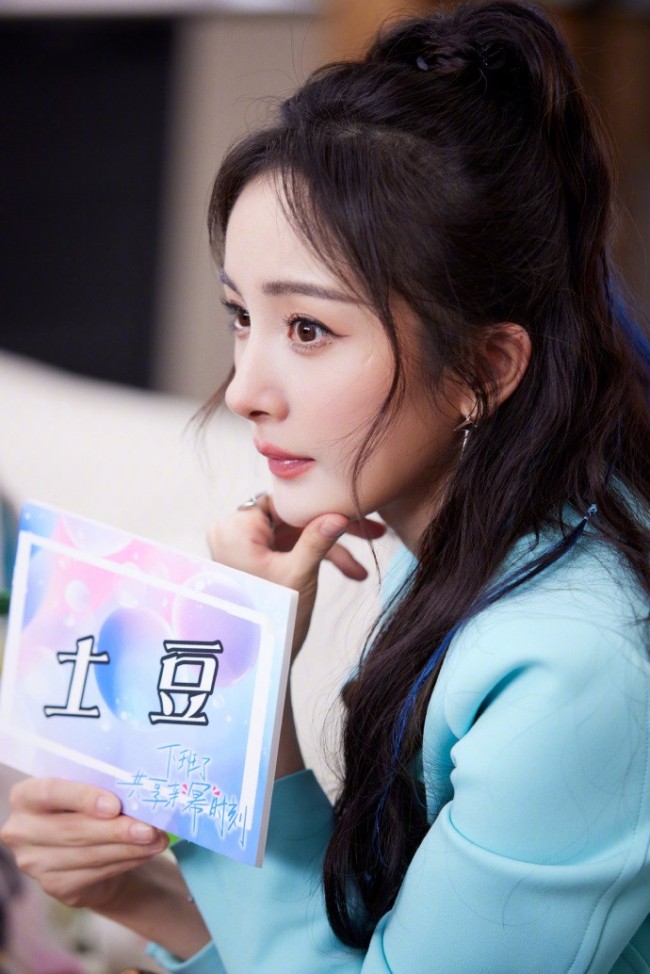 杨幂穿蓝裙秀美腿 扎高马尾少女感十足