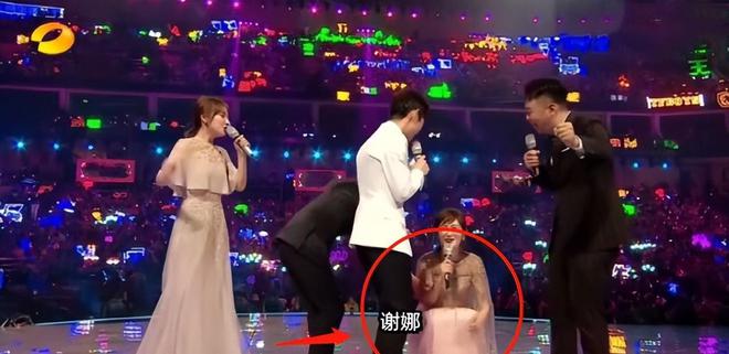 在一次大型直播晚会上,面对数以万计的观众,谢娜任性起来蹲地撒娇。