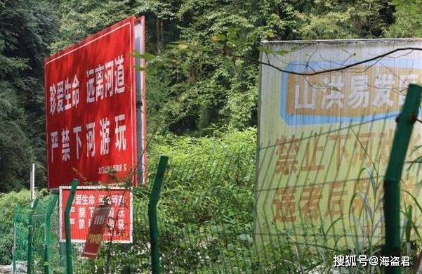 河道上有很多禁止下水的标识,还用图文的方式列举了山洪突至的危险,甚至还用围栏将河道给围了起来。