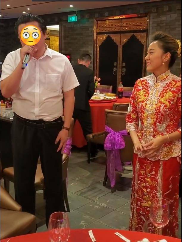 值得一提的是,婚礼看上去比较简单朴素,并未多加布置。可以看到现场的环境并不算大,桌椅之间的空隙更是狭窄。